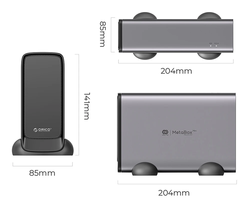 > ORICO Mini MetaBox is for general users, after loading a SATA hard disk and connecting to the home network, you can store all digital content in your own private storage device.