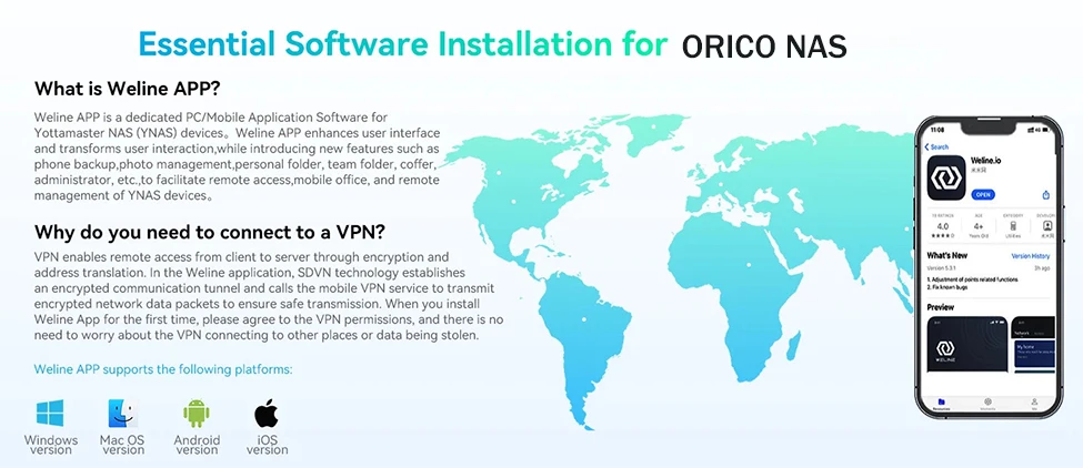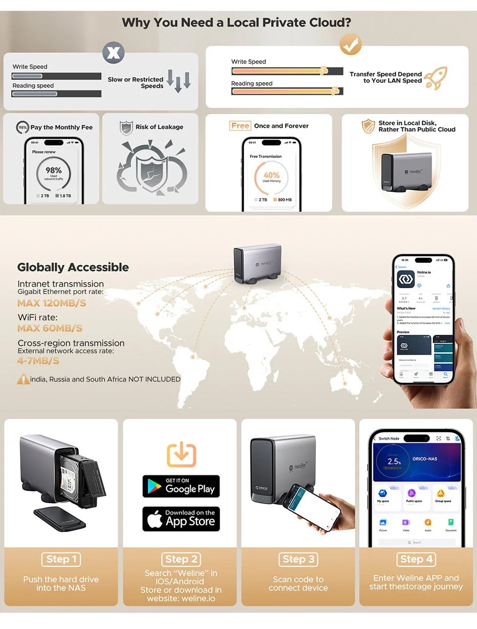 ORICO NAS Network Cloud Server Family Attached Storage System 2.5/3.5"SATA SSD HDD Enclosure DAS Hard Disk Case APP Smart Backup