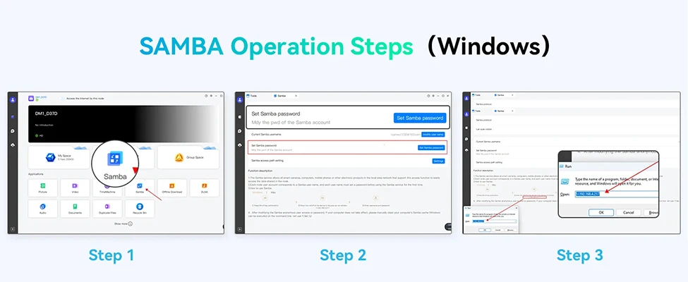 1、Put the HDD/SSD into the family storage, connet the Ethernet cable